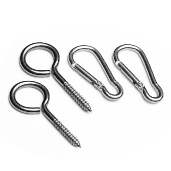 • Quick and easy setup using carabiners, screw-in hooks, and cord locks